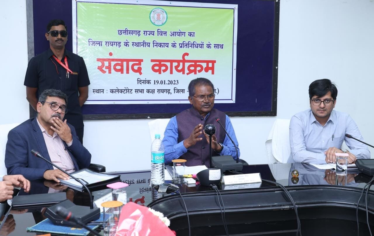 Raigarh News रायगढ़, 19 जनवरी 2023/ कलेक्टोरेट सभाकक्ष में आज छत्तीसगढ़ राज्य वित्त आयोग का स्थानीय पंचायत एवं नगरीय निकाय के प्रतिनिधियों के साथ संवाद कार्यक्रम संपन्न हुआ। आयोग अध्यक्ष श्री सरजिंयस मिंज ने कहा कि राज्य वित्त आयोग गठन का मुख्य उद्वेश्य पंचायती राज संस्थाओं एवं नगरीय निकायों की वित्तीय एवं संगठनात्मक ढांचे को मजबूती प्रदान करना है। जिससे वे सभी प्रकार की सेवाओं को बेहतर एवं सुचारू रूप से संचालित कर सके। उन्होने बताया कि अब तक राज्य में इसके पूर्व तीन वित्त आयोग का गठन हो चुका है, वर्तमान में चतुर्थ वित्त आयोग का गठन हुआ है।