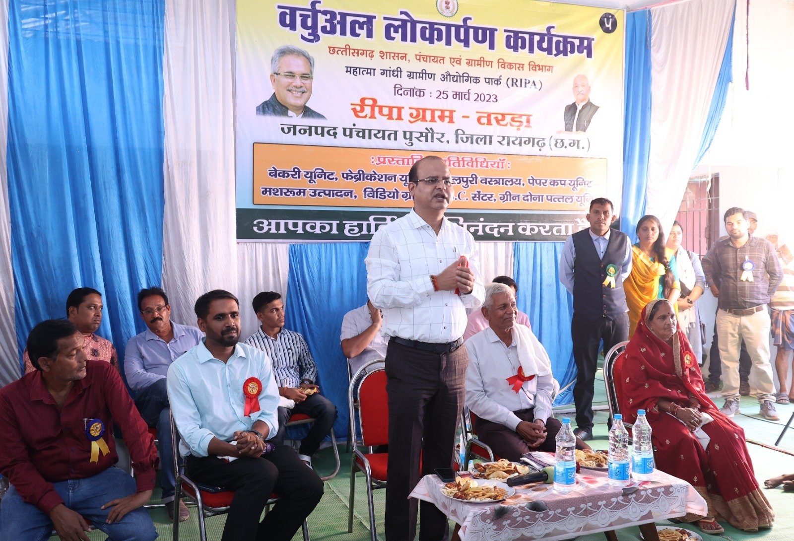 जिला स्तरीय कार्यक्रम में शामिल हुए जिला अध्यक्ष श्री निराकार पटेल ने तरडा गांव के सभी ग्रामीणों एवं समूह की महिलाओं को रीपा गोठान के उद्घाटन पर बधाई दी। उन्होंने कहा कि मुख्यमंत्री श्री भूपेश बघेल के मंशानुरूप ग्रामीण उद्यमिता को बढ़ावा देने के उद्देश्य से प्रदेश भर में रीपा-गोठानों का निर्माण किया जा रहा है। गोठान में विभिन्न प्रकार की गतिविधियां संचालित होगी और निश्चित तौर पर महिलाएं आगे बढ़ेगी। इससे तरड़ा गांव के साथ-साथ विकासखंड का नाम रोशन होगा।