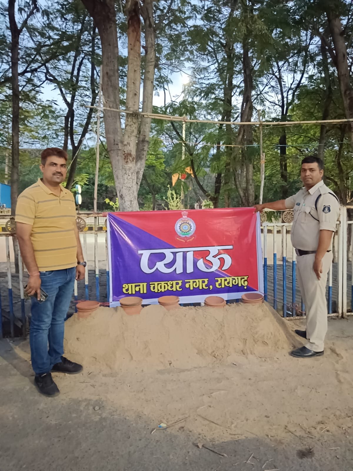 Raigarh News *रायगढ़* । बढ़ती गर्मी से राहगीरों की प्यास बुझाने के लिए चक्रधरनगर पुलिस द्वारा शहर के प्रमुख शहीद हेमू कालाणी चौक (सिंग्नल चौक) और थाने के सामने प्याऊ लगाकर ठंडे पानी की व्यवस्था की गई है । प्रतिदिन दूर-दराज से इस ओर आमजन विभिन्न कार्यों से आते हैं, ऐसे में राहगीरों को ठंडे पानी के लिए इधर-उधर भटकना नहीं पड़े, जिसे देखते हुए भीड़भाड़ वाले स्थानों पर प्याऊ लगाया गया है । थाने के स्टाफ प्रतिदिन प्याऊ में पानी की व्यवस्था की जा रही है जिससे आम नागरिक व राहगीर अपनी प्यास बुझा सकें और गर्मी से कुछ राहत पा सकें । वरिष्ठ पुलिस अधीक्षक श्री सदानंद कुमार द्वारा बेसिक पुलिसिंग के समानांतर सामुदायिक पुलिसिंग के कार्यों पर विशेष बल दिया जा रहा है । इसी तारतम्य “जन चेतना” के तहत आमजन को अपराधों के प्रति जागरूक किये जाने के साथ ही पुलिसकर्मियों द्वारा कई मानवीय कार्य किये जा रहे हैं ।