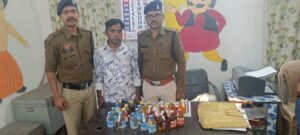 लैलूंगा पुलिस ने बुधवारी बाजार में महुआ शराब के साथ आरोपी को पकड़ा, 10 लीटर महुआ शराब जब्त