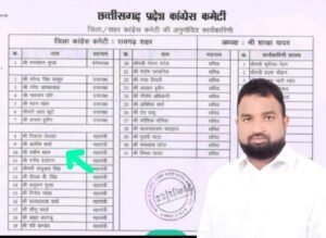 छत्तीसगढ़ प्रदेश कांग्रेस के निर्देश पर जारी सूची में 31 पदाधिकारी नियुक्त, युवाओं में उत्साह की लहर संघर्ष और सक्रियता का मिला पुरस्कार, संगठन को मजबूती देने की जिम्मेदारी अब वसीम के कंधों पर