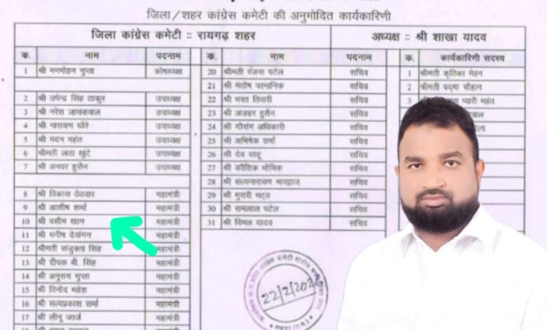 Raigarh News: कांग्रेस को मिली नई धार, वसीम खान बने शहर जिला कांग्रेस कमेटी के महामंत्री – RGH NEWS