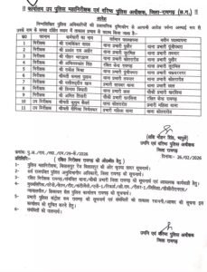 Raigarh Newsउप निरीक्षक कुसुम केवर्त को कोतरारोड से प्रभारी महिला थाना तथा उप निरीक्षक दीपिका निर्मलकर को महिला थाना से कोतरारोड पदस्थ किया गया है। (Chhattisagarh Police Station Incharge Transfer List) 26 फरवरी 2026 को जारी किये गए आदेश के साथ ही प्रभावित अधिकारियों को तत्काल नवीन पदस्थापना स्थल पर कार्यभार ग्रहण करने के निर्देश दिए गए हैं।