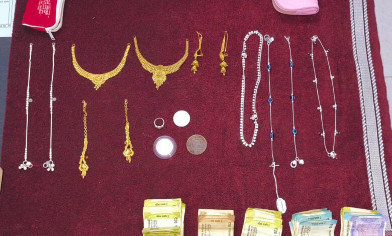 घटना की गंभीरता को देखते हुए थाना भूपदेवपुर पुलिस द्वारा तत्काल मामले की जांच शुरू की गई। माल मुल्जिम पतासाजी के दौरान मुखबिर सूचना और साक्ष्यों के आधार पर संदेही जितेन्द्र कुमार डनसेना पिता डोलनारायण डनसेना उम्र 28 वर्ष निवासी ग्राम जबलपुर को हिरासत में लेकर पूछताछ की गई। पूछताछ में आरोपी ने बताया कि वह ऑनलाइन गेमिंग में काफी पैसे हार गया था, जिसके कारण पैसों की आवश्यकता होने पर उसने चोरी की वारदात को अंजाम दिया। आरोपी के मेमोरेंडम के आधार पर उसके कब्जे से चोरी गए सोने का हार एवं झूमका कुल वजन करीब 25 ग्राम कीमती 3,50,000 रुपये, चांदी का पायल, अंगूठी एवं सिक्का कुल वजन 93 ग्राम कीमती 31,000 रुपये तथा नगदी रकम 1,030 रुपये बरामद कर जप्त किया गया। कुल जप्त संपत्ति की कीमत 3,81,000 रुपये है।