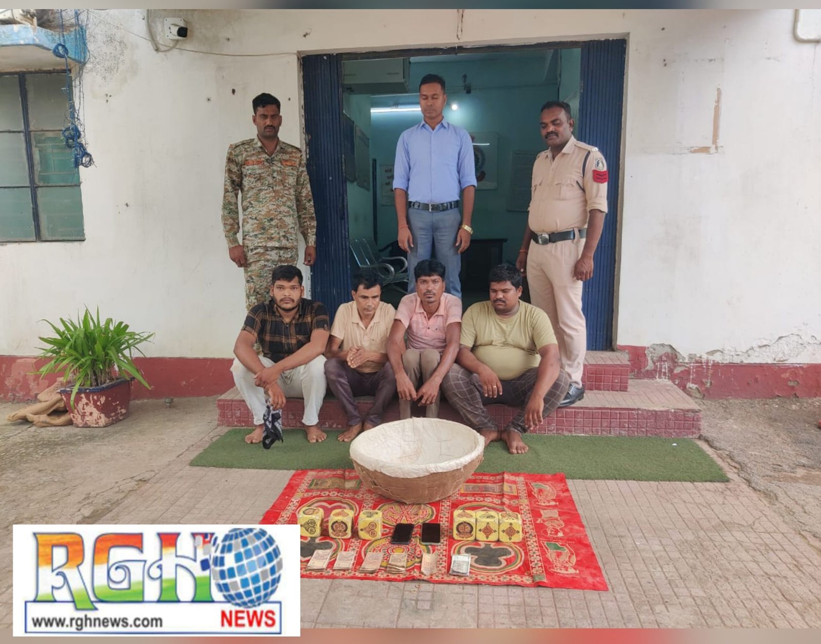 Raigarh News *17 जुलाई, रायगढ़* । कल दिनांक 16.07.2024 को थाना घरघोड़ा क्षेत्र अंतर्गत ग्राम भेंगारी में रथ मेला का आयोजन किया गया था । शांति व्यवस्था के लिये थाना घरघोड़ा की पेट्रोलिंग भ्रमण पर थी । इसी दरम्यान पुलिस पेट्रोलिंग को मुखबीर से रथ मेले में कुछ व्यक्तियों द्वारा खुडखुडिया पट्टी पर जुआ खेलाने की सूचना दी गई । तत्काल घरघोड़ा पुलिस की टीम द्वारा मेले में जुआ खेलाने वालों की घेराबंदी किया गया, मौके पर जुआ खेलने वाले भागे, पुलिस ने खुडखुडिया पट्टी पर जुआ खेलाने वाले 04 व्यक्तियों को पकड़ा जिनसे खुडखुडिया जुआ सामाग्री- खुडखुडिया पट्टी, बांस के टोकरी, गोटी और जुआ रकम ₹1560 एवं 02 मोबाइल की जप्ती की गई है । गिरफ्तार आरोपी- (1) खगेश्वर पटैल पिता छबीलाल पटैल उम्र 32 वर्ष (2) सरोज यादव पिता मसत राम यादव उम्र 35 वर्ष (3) चैतन पटैल पिता कुमार पटैल उम्र 24 वर्ष सभी ग्राम भेंगारी, थाना घरघोडा (4) श्रवण विशाल पिता हेमलाल विशाल उम्र 36 वर्ष निवासी ग्राम डहोली थाना लुण्डा जिला सरगुजा हामु ग्राम भेंगारी, थाना घरघोडा जिला रायगढ़ के विरूद्ध धारा 6 छत्तीसगढ़ जुआ (प्रतिषेध) अधिनियम 2022 के तहत कार्यवाही किया गया है ।