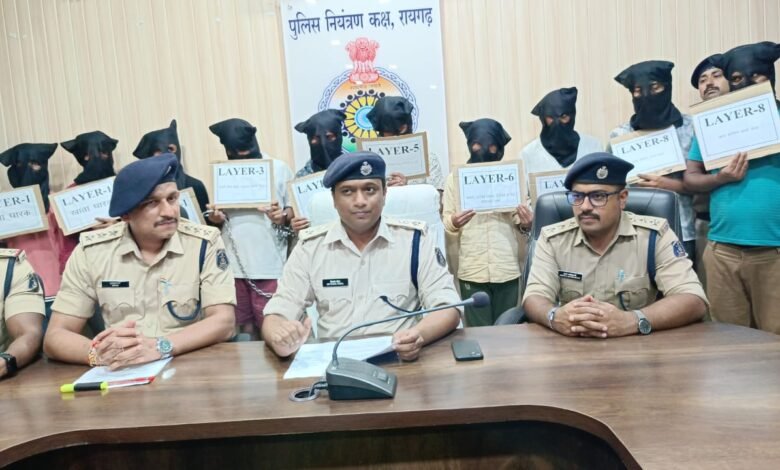 LAYER -8 मुख्य कॉलिंग टीम जो फ़र्ज़ी नंबरों का प्रयोग कर प्रार्थी को कॉल कर ठगी को अंजाम देते थे एवं पैसा आने पर नीचे के सभी लेयर्स को यथोचित कमीशन बाटते थे । इस प्रकार पुलिस की पकड़ में आने से बचने के हर संभव प्रयास के बावजूद भी रायगढ़ पुलिस द्वारा अपनी सूझबूझ और कार्यकुशलता से इस गिरोह का भांडाफोड़ किया गया है। प्रकरण में विवेचना जारी है निकट भविष्य में और भी आरोपियों के पकड़े जाने की संभावना है ।