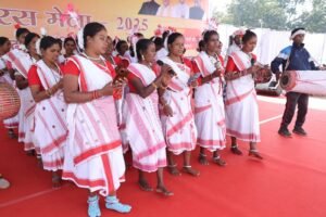 Raigarh News: रायगढ़, 10 जनवरी 2025/ रायगढ़ जिले में आयोजित क्षेत्रीय सरस मेला में स्व-सहायता समूह की दीदियों ने अपने सांस्कृतिक कार्यक्रम से सबको मोहित किया है। कार्यक्रम के मंच से जिले के बिहान के स्व-सहायता समूह के दीदियों के द्वारा छत्तीसगढ़ के लोक नृत्य एवं लोक गीत का मंचन किया जा रहा है, जिसमें ददरिया, कर्मा, पंथी, सूआ, बांस गीत, बिरहोर, रावत नाचा नृत्य एवं कौमी एकता गीत जैसे गायन की प्रस्तुती दी जा रही है। साथ ही वित्तीय साक्षरता एवं सफलता की कहानी जैसे नाटकों के माध्यम से अपनी विशेष प्रस्तुती से मंच के माध्यम से दीदियों का कला देखने को मिल रहा है। समूह की दीदियों द्वारा आयोजित छत्तीसगढ़ी लोक नृत्य एवं लोक गीत के मंचन से दर्शक मंत्रमुग्ध हो रहे है।