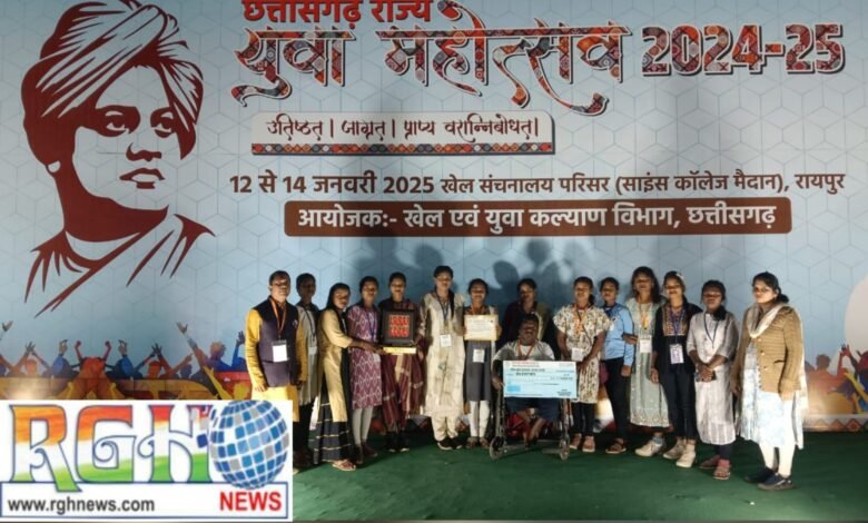 Raigarh News: रायगढ़, 16 जनवरी 2025/ रायपुर के साइंस कॉलेज मैदान एवं पं.दीनदयाल उपाध्याय ऑडिटोरियम में 12 से 14 जनवरी तक आयोजित राज्य स्तरीय युवा महोत्सव में रायगढ़ जिले के प्रतिभागियों ने शानदार प्रदर्शन किया।