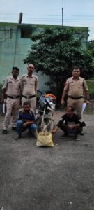 Raigarh News:    *रायगढ़, 12 जुलाई 2025*- पुलिस अधीक्षक श्री दिव्यांग पटेल के दिशा-निर्देशन पर जिले में अवैध शराब परिवहन के विरुद्ध लगातार कार्रवाई की जा रही है। इसी कड़ी में थाना कोतरारोड़ प्रभारी निरीक्षक मोहन भारद्वाज के नेतृत्व में शनिवार 12 जुलाई को दोपहर मुखबिर की सूचना पर बाबाधाम कोसमनारा तिराहा के पास घेराबंदी कर दो शराब तस्करों को मोटरसाइकिल के साथ रंगे हाथ पकड़ा गया।