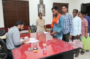Raigarh Today News: रायगढ़, 24 जून 2025/ कलेक्टर श्री मयंक चतुर्वेदी ने आज कलेक्टर कक्ष के बाहर प्रतीक्षा कक्ष में आज जनदर्शन लिए। इस दौरान उन्होंने जिले भर से अपनी मांग, शिकायत एवं समस्याओं के लेकर पहुंचे लोगों से चर्चा कर उनकी समस्याएं सुनी। उन्होंने जनदर्शन में प्राप्त आवेदनों के समाधान हेतु संबंधित अधिकारियों को निर्देशित किया।