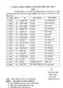 Raipur Police Transfer राजधानी रायपुर के पुलिस महकमे में एक बार फिर बड़ा फेरबदल हुआ है। यहां एक साथ 121 पुलिसकर्मियों का ट्रांसफर हुआ है। इनमें सब इंस्पेक्टर (SI), असिस्टेंट सब इंस्पेक्टर (ASI) हेड कांस्टेबल और कांस्टेबल शामिल है। इनमें वे पुलिसकर्मी भी शामिल है, जो लंबे वक्त से रिजर्व बल में अटैच है उन्हें थानों में जिम्मेदारी दी गई है।