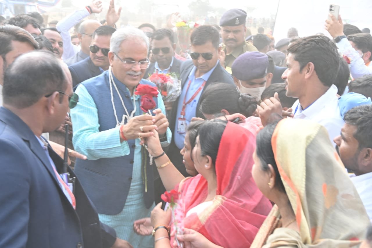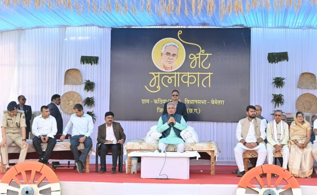मुख्यमंत्री श्री भूपेश बघेल भेंट-मुलाकात कार्यक्रम के लिए बेमेतरा विधानसभा के विकासखंड बेरला के अंतर्गत ग्राम कठिया (रांका) पहुंचे