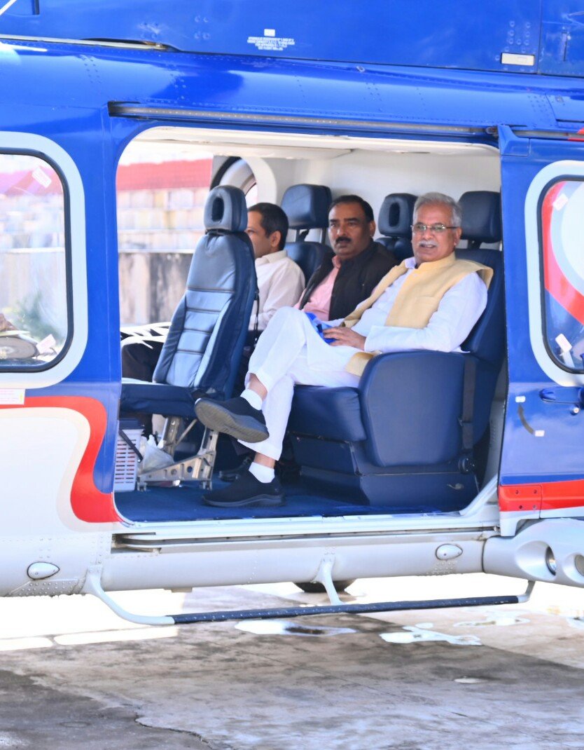 मुख्यमंत्री श्री भूपेश बघेल रायपुर पुलिस लाईन हेलीपेड से बेमेतरा जिले के ग्राम दाढ़ी के लिए रवाना