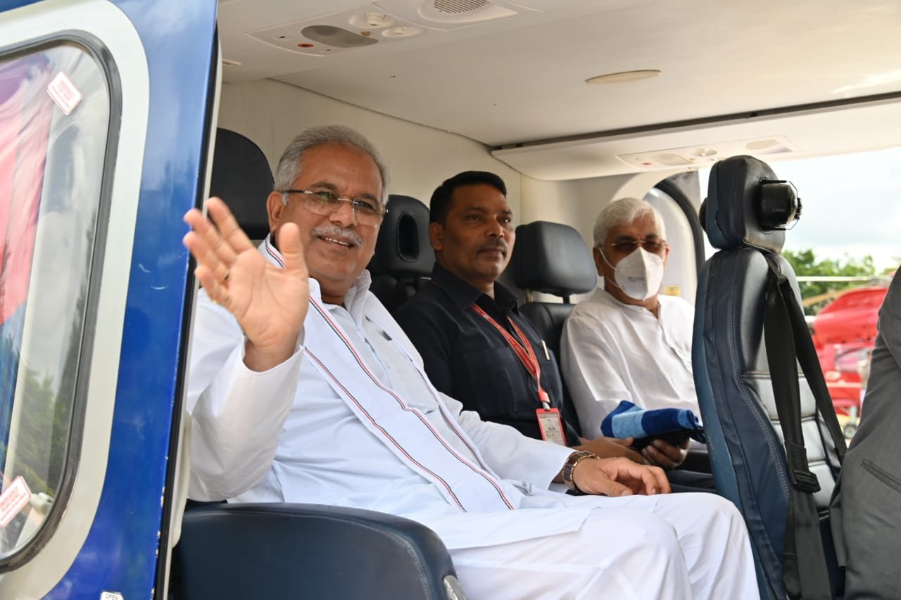 रायपुर : मुख्यमंत्री श्री भूपेश बघेल रायपुर पुलिस लाईन हेलीपेड से कवर्धा विधानसभा के झलमला के लिए रवाना