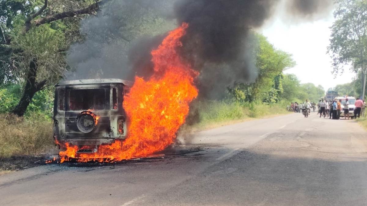 छत्तीसगढ़ के इस जिले में बीच सड़क धू-धूकर जली सवारी गाड़ी…12 यात्री मां बम्लेश्वरी के दर्शन के बाद लौट रहे थे घर…जानिए फिर क्या हुआ