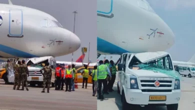 Mini Bus Hits Indigo Plane बेंगलुरु के केम्पेगौड़ा अंतरराष्ट्रीय हवाई अड्डे पर इंडिगो एयरलाइंस के एक खड़े हुए विमान से…