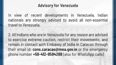 US-Venezuela war: वेनेजुएला में मौजूदा हालात को देखते हुए भारत सरकार ने अपने नागरिकों को वहां गैर-जरूरी यात्रा से बचने…