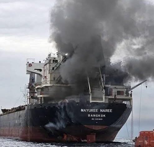 US Iran War बैंकॉक पोस्ट की रिपोर्ट के अनुसार, बुधवार को होर्मुज जलडमरूमध्य में गुजरात की ओर जा रहे थाई ध्वज वाले एक मालवाहक जहाज पर अज्ञात मिसाइल से हमला हुआ, जिससे जहाज में आग लग गई और बचाव अभियान शुरू किया गया। इस दौरान 20 चालक दल के सदस्यों को सुरक्षित निकाल लिया गया, जबकि तीन जहाज पर ही फंसे रह गए। समुद्री सुरक्षा सूत्रों और जहाज ट्रैकिंग डेटा के अनुसार, मयूरी नारी नामक इस जहाज को ओमान के उत्तरी तट से लगभग 11 समुद्री मील दूर निशाना बनाया गया था। थाईलैंड सरकार ने पुष्टि की है कि घटना के बाद 20 चालक दल के सदस्यों को बचा लिया गया, जबकि तीन चालक दल के सदस्य अभी भी जहाज पर मौजूद हैं।