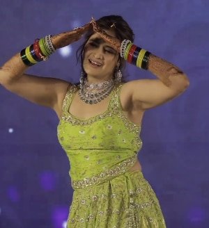 लाइट ग्रीन कलर के लहंगा चोली में आरती बेहद खूबसूरत लग रही है
