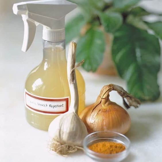 लहसुन की कलियों को 30 मिनट तक गर्म पानी में भिगोएं और छानकर छिड़काव करें