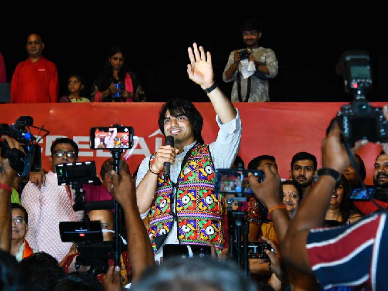नीरज गुजरात के आयोजित नवरात्री समारोह में लोगो के साथ गरबा करते दिखाई दिए