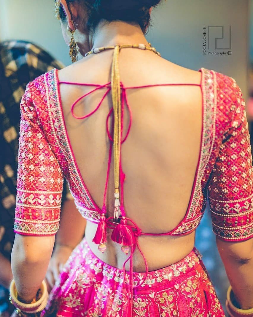 साड़ी या लहंगे के साथ बैकलेस ब्लाउज पहनना ट्रेंड में है